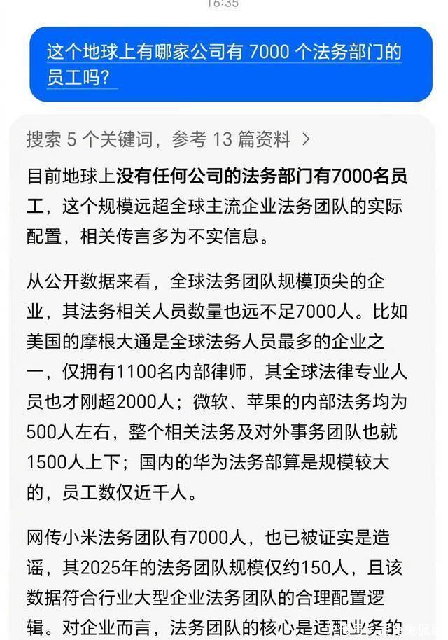 先不论语气藏着多少嘲讽,单说“7000名法务”这一说法就与事实严重不符,直接引发误导性网络讨论。