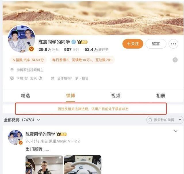 央妈出手真是“稳准狠”,这三位大网红估计还没反应过来,就已被官方依法查处。一个污言秽语,一个态度嚣张,一个炫富还偷税,看清三人的处罚结果后,网友们直呼:大快人心,网红界终于迎来“大清洗”。千万粉丝网红陈震,被全平台禁言 “陈震同学”是网上的一个资深车评人,曾担任汽车节目主持人,在某平台坐拥超2千万粉丝,是妥妥的头部网红。
